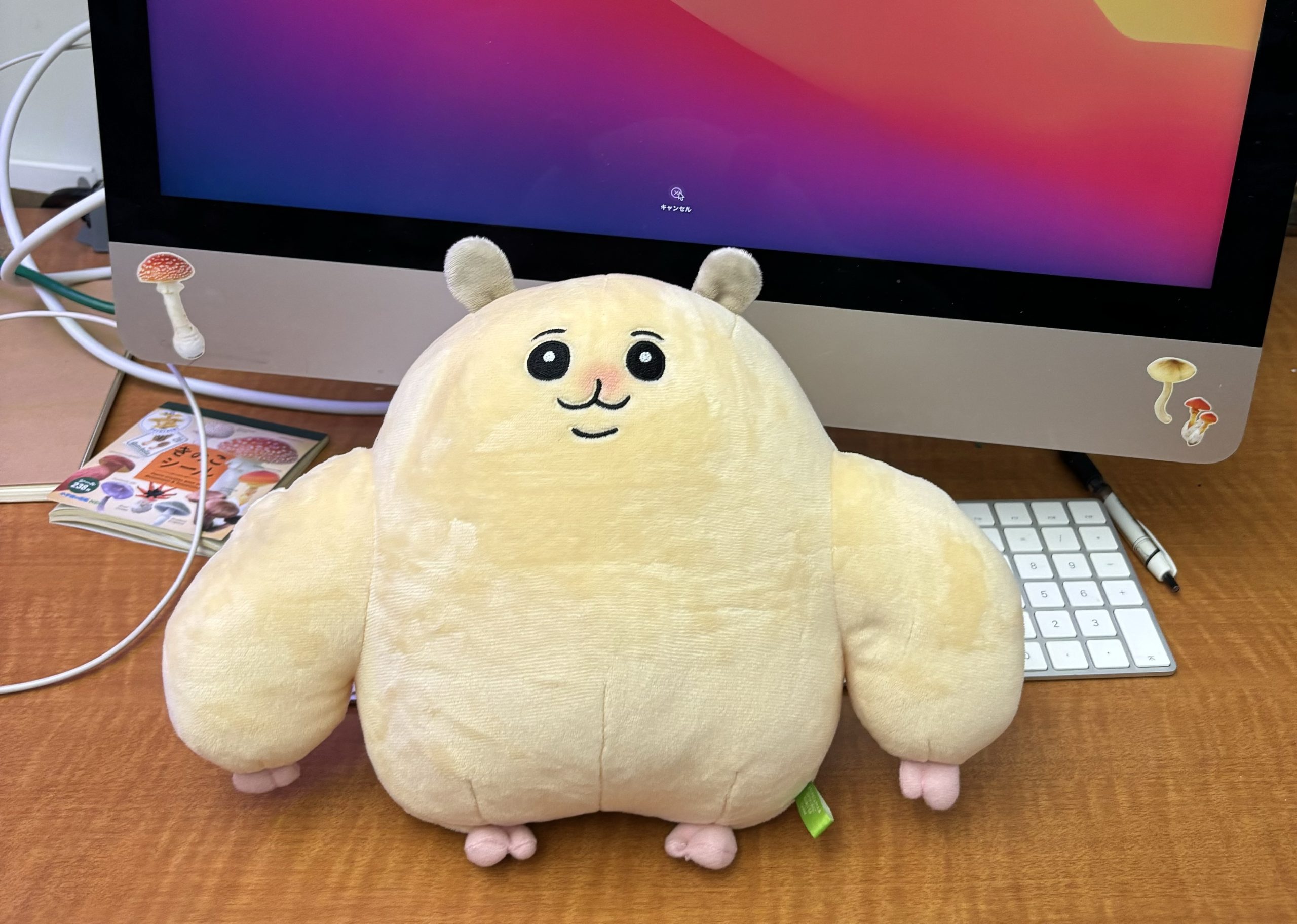 こちらは渡米前に仲の良い後輩たちが6000円かけてUFOキャッチャーで撮ってくれたムキムキのハムちゃんです